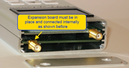 Before following this process, be sure you upgrade the RF Explorer firmware the latest available version from the download page. The firmware upgrade must be done before you install the hardware Expansion Module.