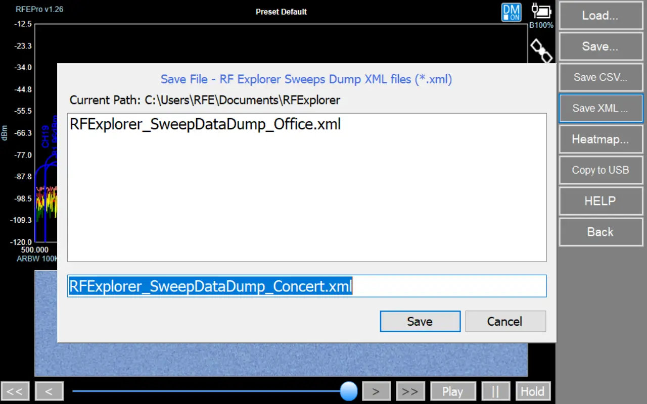Also you can load a .RFE file with captured data preivously and generate Heatmap file.