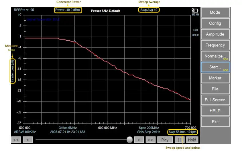 Tracking SNA steps. The more steps you use, the longer the sweep will take. Recommended values are from 50 to 200 steps for a good compromise of speed and resolution.
