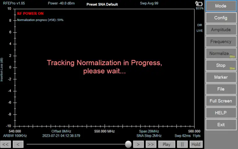 Perform/Finalize SNA for continuous tracking sweep. Screen will be updated with SNA results every few seconds.