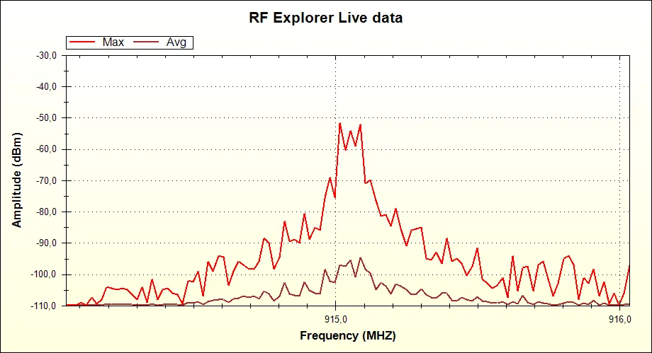 We get a clear signal around 915Mhz. Note: If you don’t get that, some connection is wrong or the Arduino sketch wasn’t properly uploaded.