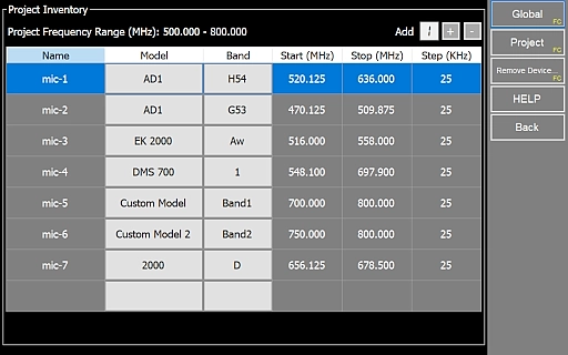 In this inventory, users define visual device name and establish the specific devices that will be involved in coordinating frequencies for a particular project.